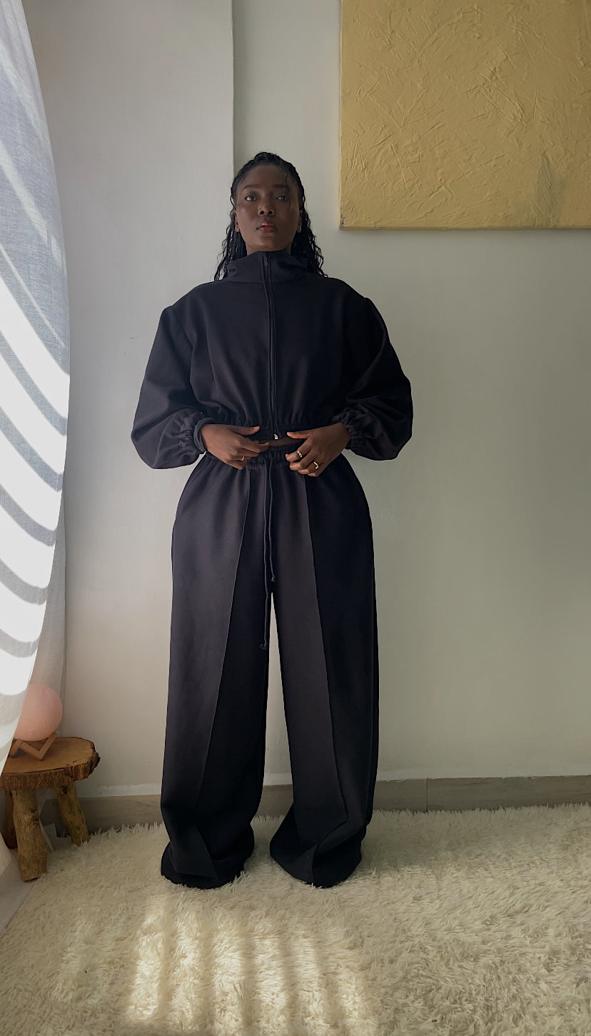 Our Black Zip- Up Jacket is Versatile, stylish, and effortlessly cool—this jacket is designed to transform your look in seconds. The adjustable zip-up front lets you switch between a high pull-neck design for a sleek, cozy feel or a collared look for a chic, laid-back vibe. The elastic waistband gives you control over the crop—wear it high for a bold statement or lower for a relaxed fit. Plus, the elastic cuffs create a subtle puffy sleeve effect, adding the perfect touch of structure and style.