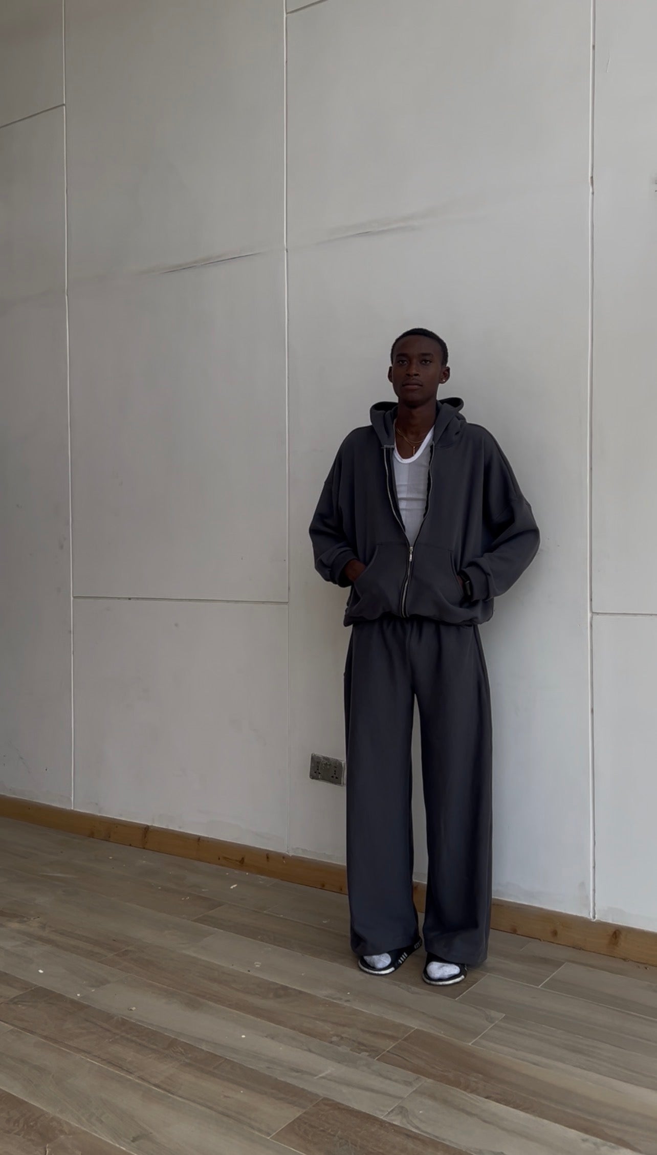 The Charcoal Drop Pants are made from the same ultrasoft fleece fabric, delivering all-day comfort with a clean, modern silhouette. Designed with a relaxed wide leg cut, these pants drape effortlessly while maintaining structure.