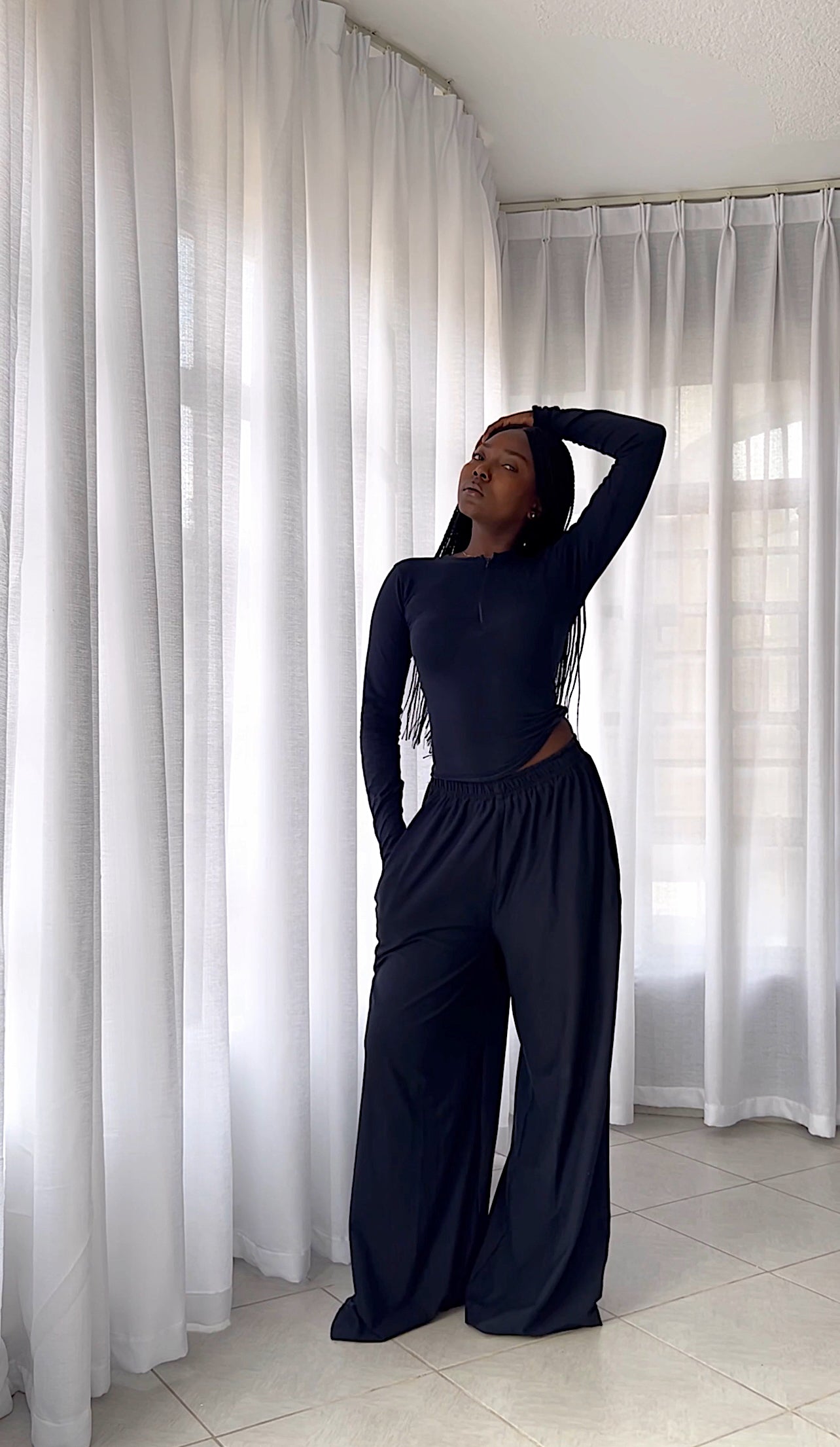 The Navy Blue Core Comfort Zip Front Top offers a modern, sleek take on everyday comfort. Made from stretchy light cotton, it contours the body while remaining breathable and lightweight. The front zipper adds a subtle edge and allows adjustable styling, making it easy to dress up or down. Ideal for lounging, casual outings, or working from home, this top transitions seamlessly into your everyday wardrobe and pairs beautifully with jeans, trousers, or the matching Navy blue Core Comfort Pants.