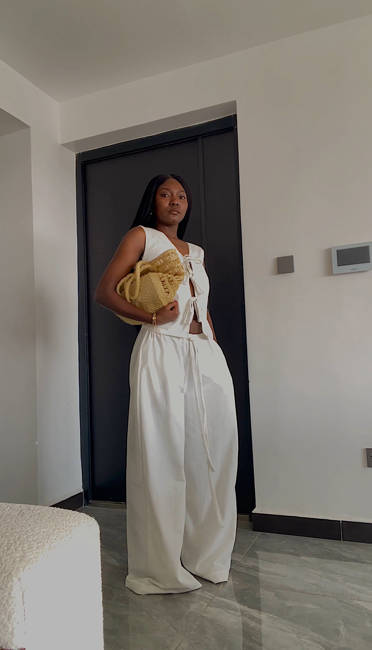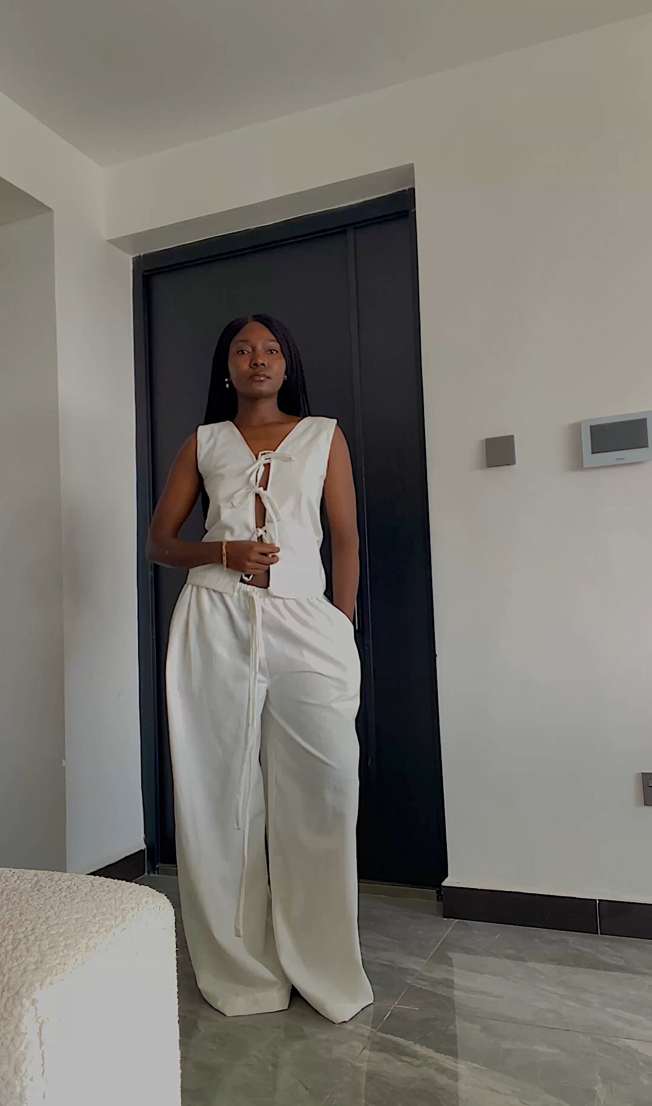 Feminine and timeless, the Amara Linen Bow Top is a playful yet elegant staple. Made from 100% linen, it features adjustable front bows that let you control the fit while adding a soft, romantic touch. The sleeveless cut and cropped silhouette pair effortlessly with high-waisted trousers, skirts, or shorts for an elevated everyday look.