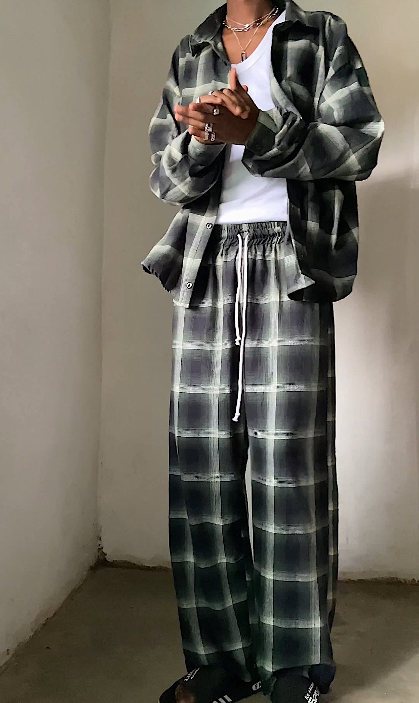 Effortless and versatile, the men’s Forest Plaid Pants are all about laid-back movement. Designed with a loose, relaxed cut and adjustable drawstring waist, they offer maximum comfort without sacrificing style. Pair them with the matching shirt for a head-to-toe statement or with a vest for a casual yet bold vibe.