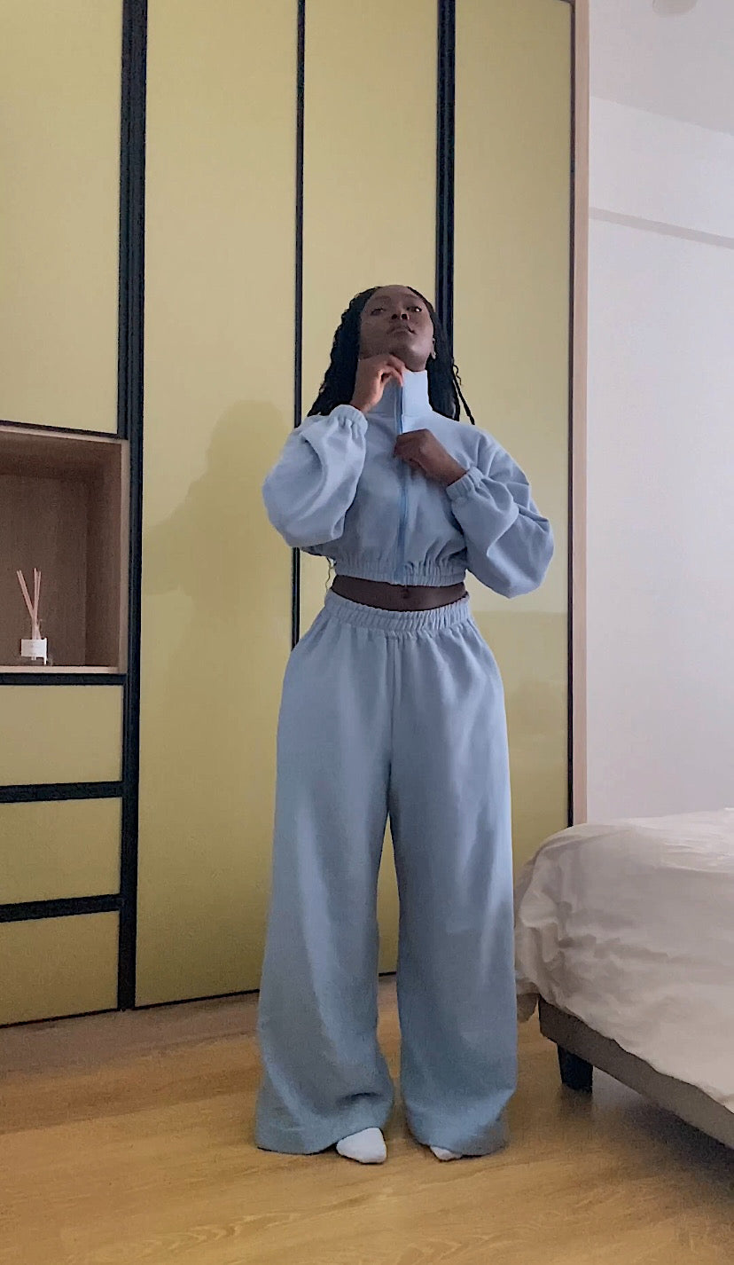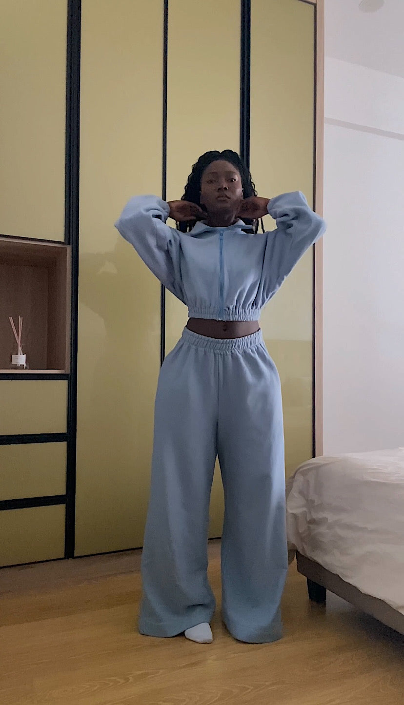 Pair it with the matching Blue Relaxed Wide Leg Pants or Our Streamline Structured Blue Pants for a clean monochrome set, or zip it up with coordinating bottoms for a comfy, jumpsuit-style look that’s both chill and put-together.
