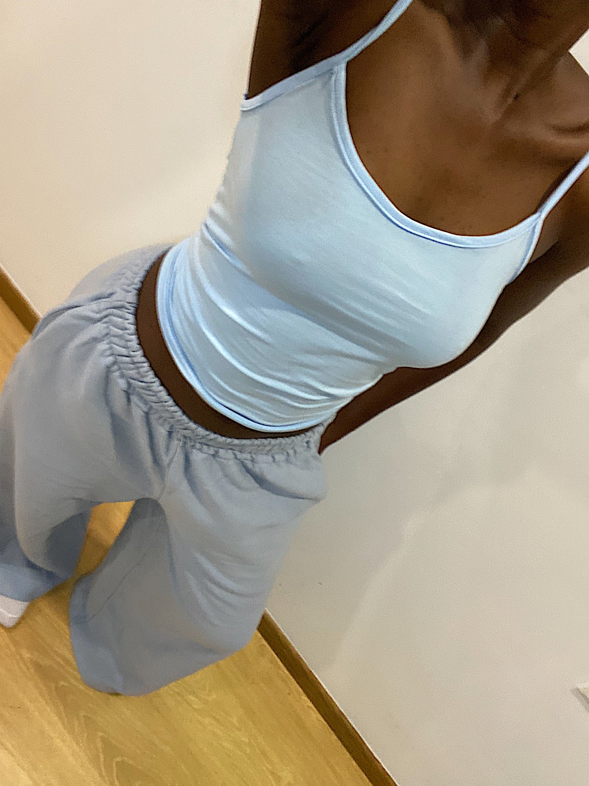 It’s the kind of piece you’ll reach for again and again—perfect on its own during warmer days or layered under hoodies, jackets, or oversized shirts. It pairs perfectly with any of our bottoms, especially the Blue Relaxed Wide Leg Pants or Our Sea Structured Streamline Pants.