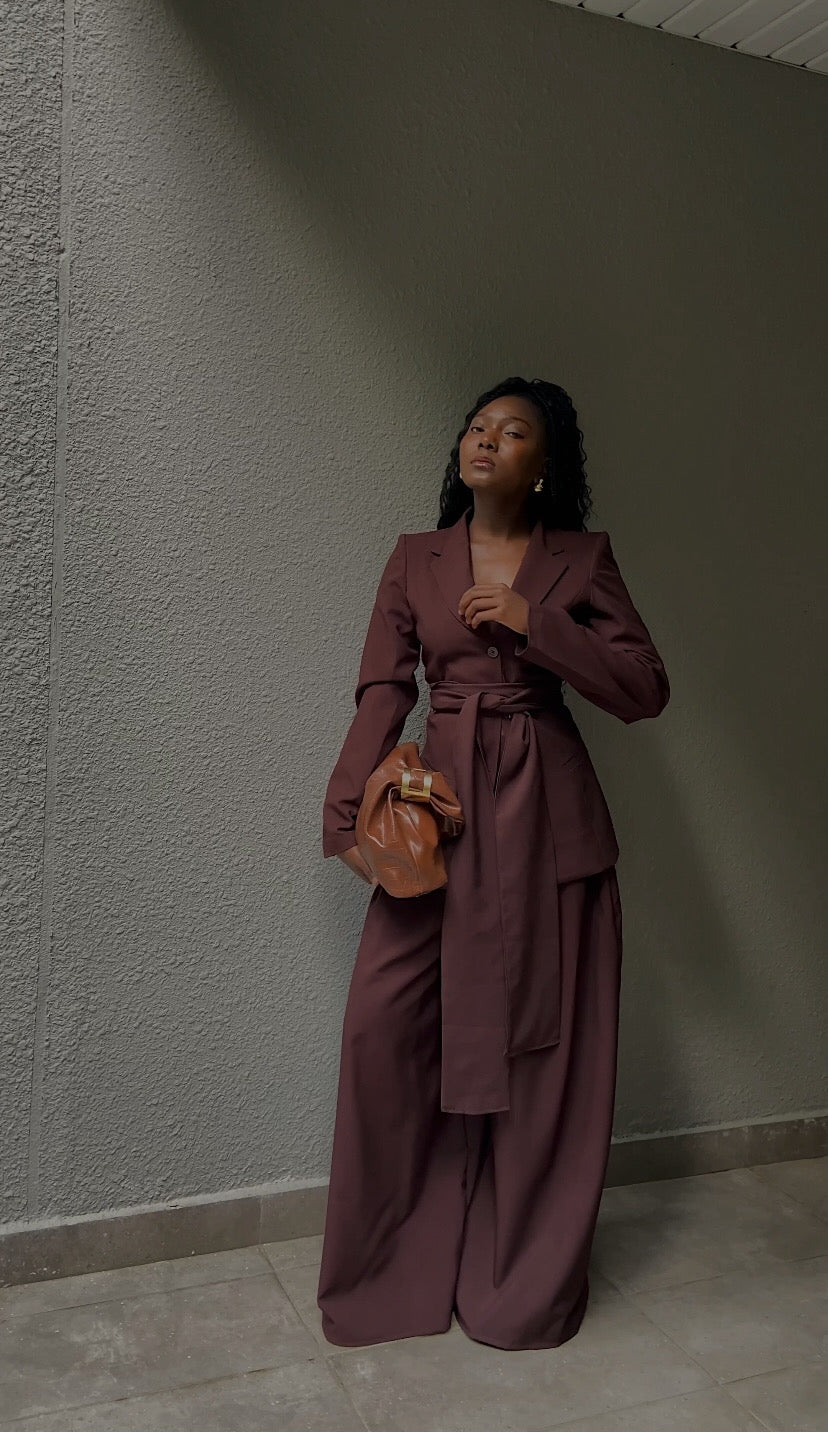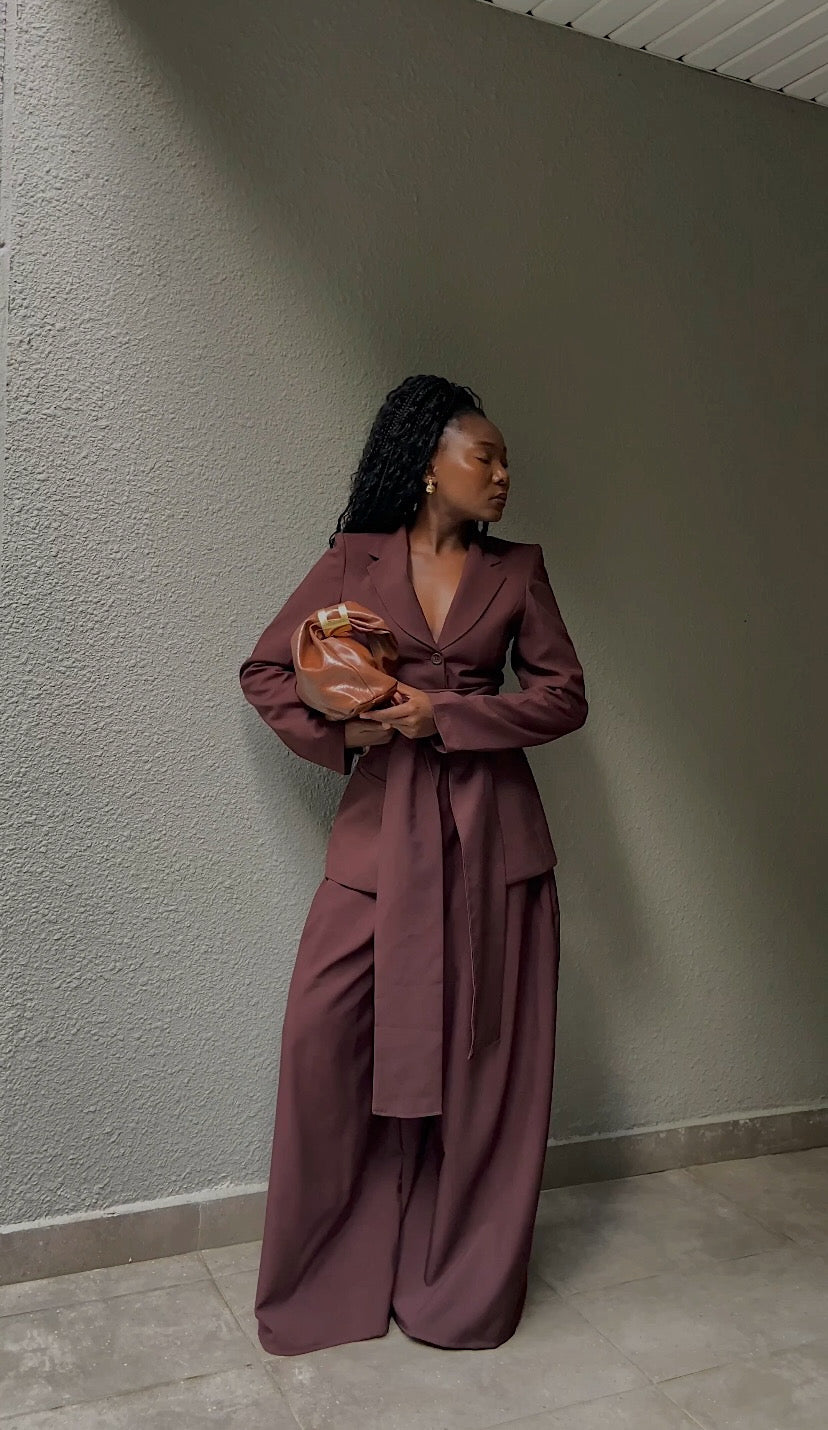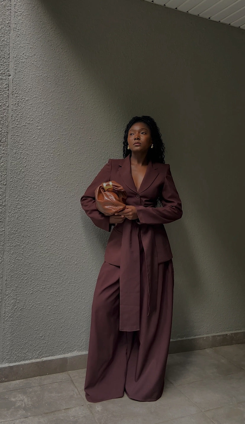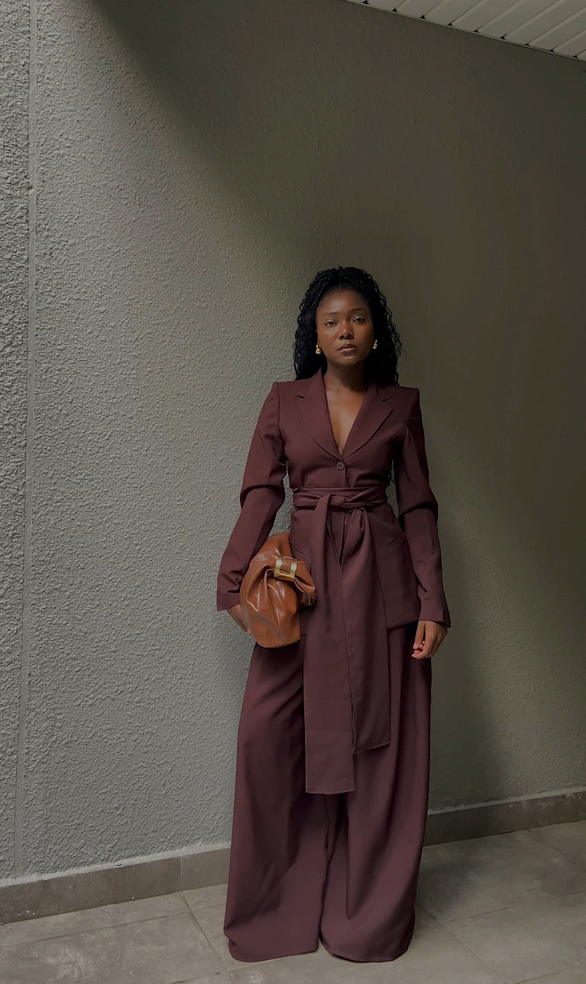 Viva Blazer – Espresso. A modern classic in rich chocolate tones, the Viva Blazer – Espresso blends sharp tailoring with effortless elegance. This structured blazer features a cinched waist with a signature extended belt tie, accentuating the silhouette while maintaining a soft, feminine edge. Crafted in our signature Viva cut, it’s designed to move with you — whether you’re stepping into the boardroom or onto a rooftop dinner.